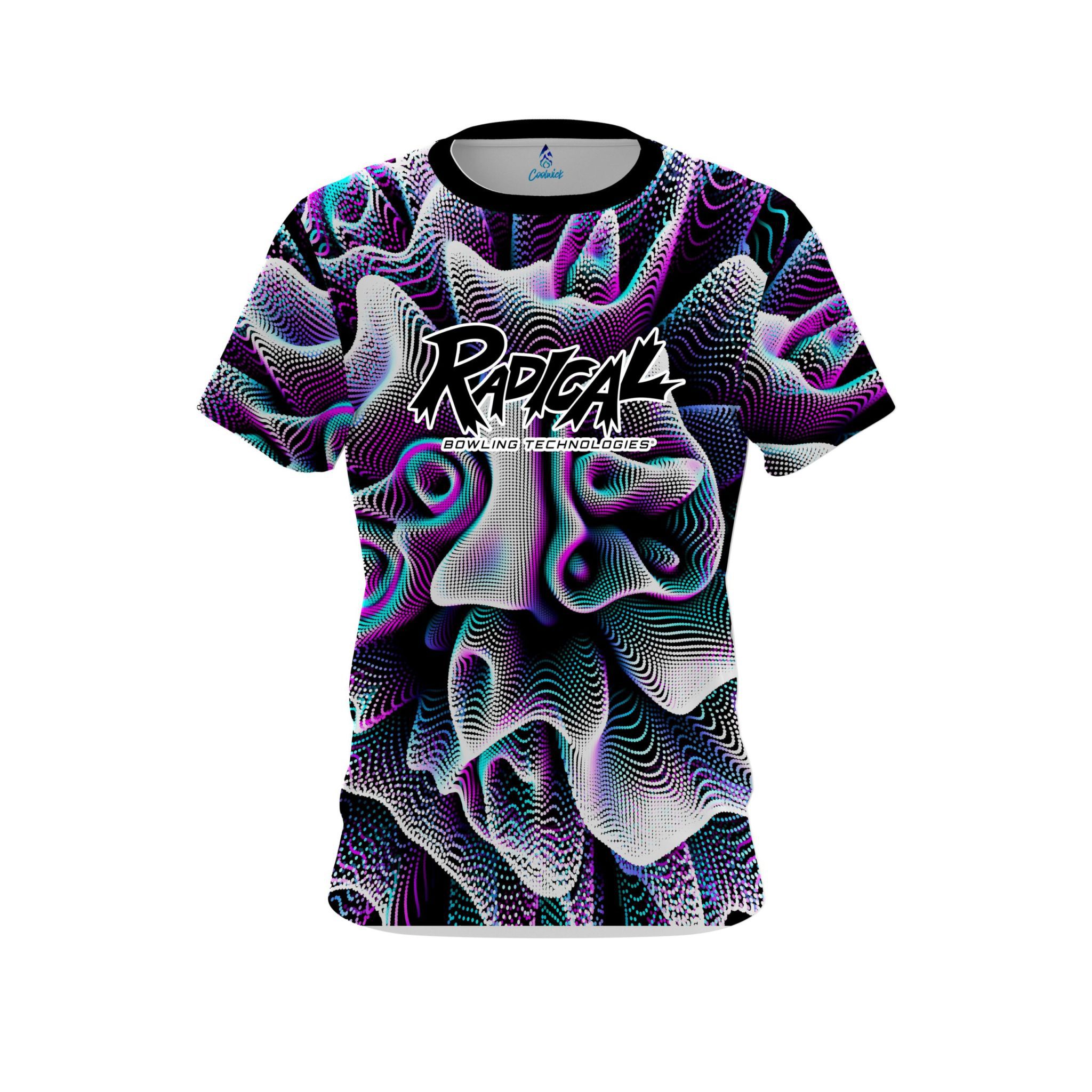 Stay 40% cooler with CoolWick. Our Radical Black White Hallucinate CoolWick Bowling Jerseys are made of two different fabrics with the back being our CoolWick technology fabric that helps wick moisture away and helps air flow more easily through the fibers.