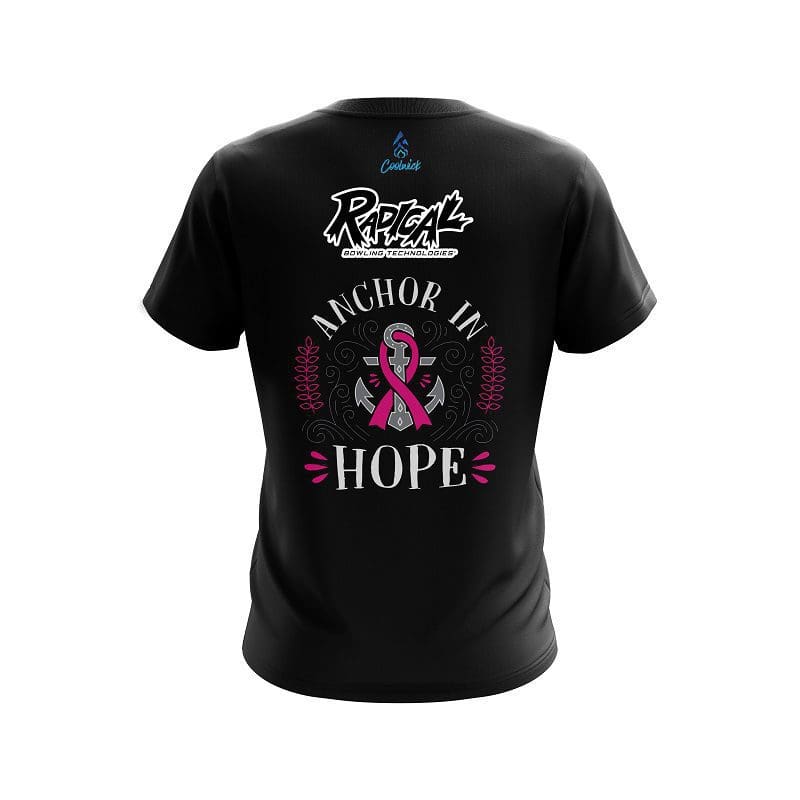 Stay 40% cooler with CoolWick. Our Radical Breast Cancer Anchor Fighter CoolWick Bowling Jerseys are made of two different fabrics with the back being our CoolWick technology fabric that helps wick moisture away and helps air flow more easily through the fibers.