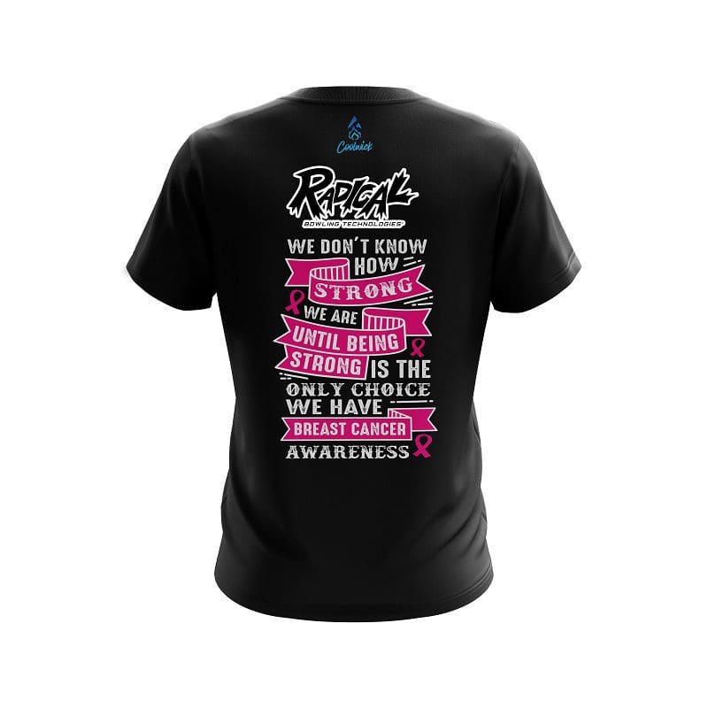 Stay 40% cooler with CoolWick. Our Radical Breast Cancer Strength CoolWick Bowling Jerseys are made of two different fabrics with the back being our CoolWick technology fabric that helps wick moisture away and helps air flow more easily through the fibers.