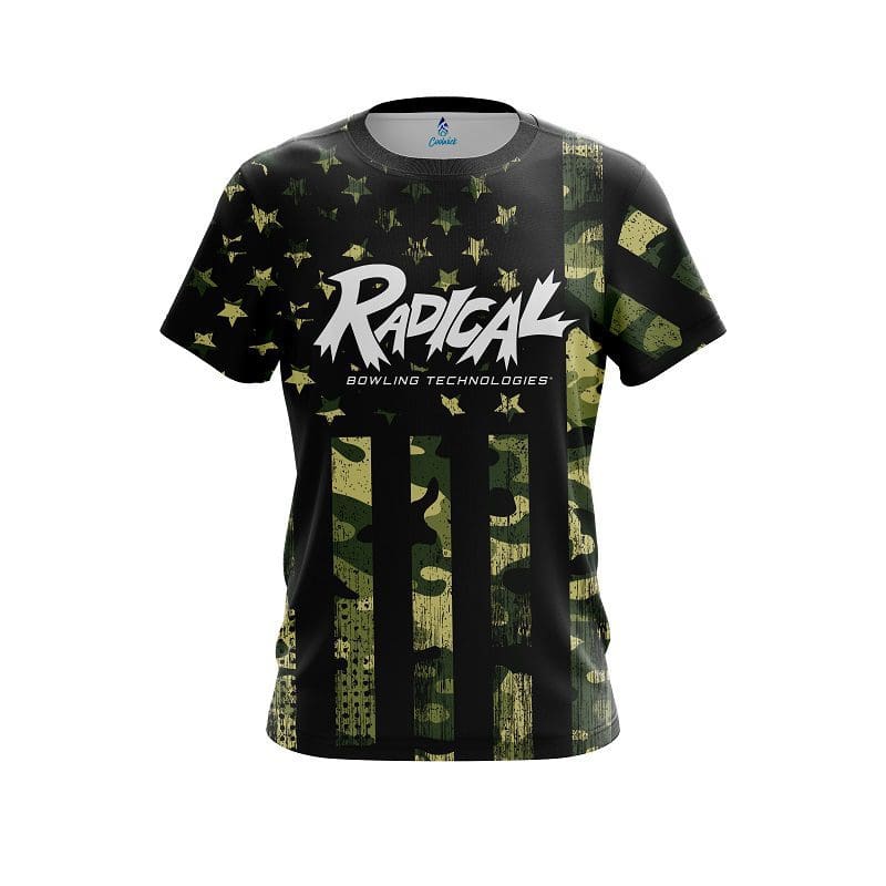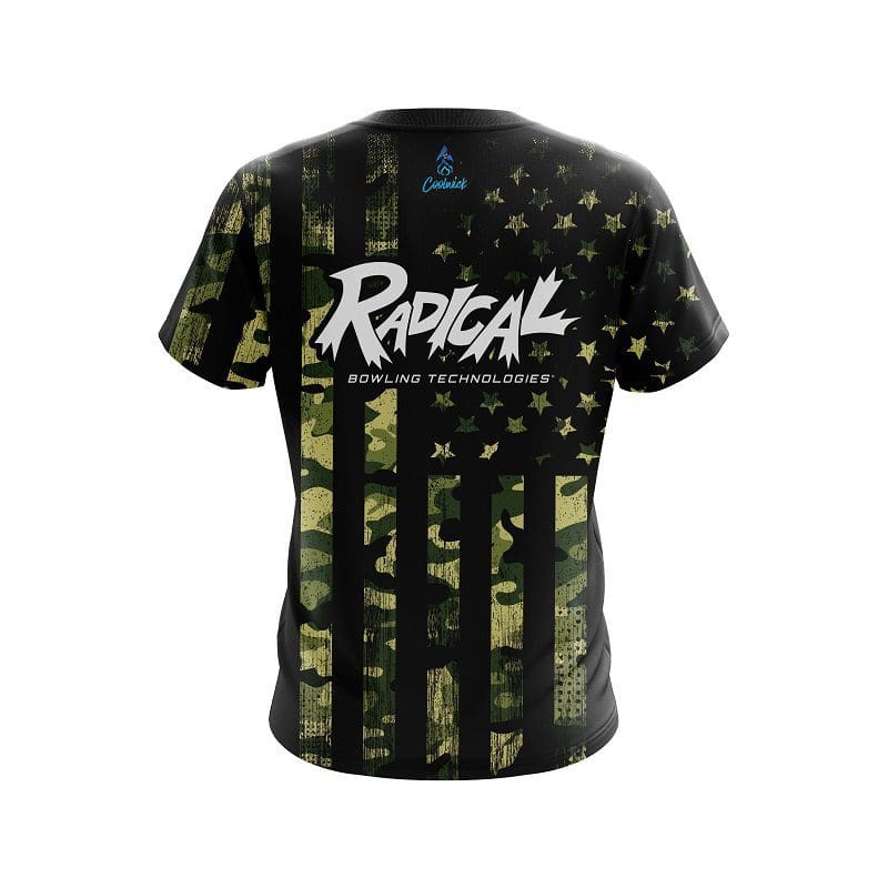 Stay 40% cooler with CoolWick. Our Radical Camouflage Flag CoolWick Bowling Jerseys are made of two different fabrics with the back being our CoolWick technology fabric that helps wick moisture away and helps air flow more easily through the fibers.