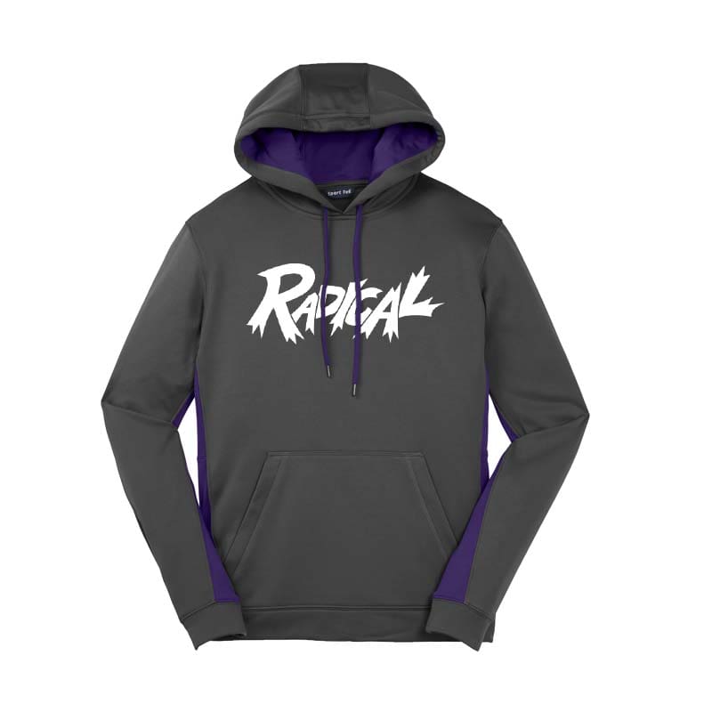 Radical Coolwick Mens Grey Purple Fleece Colorblock Hoodie