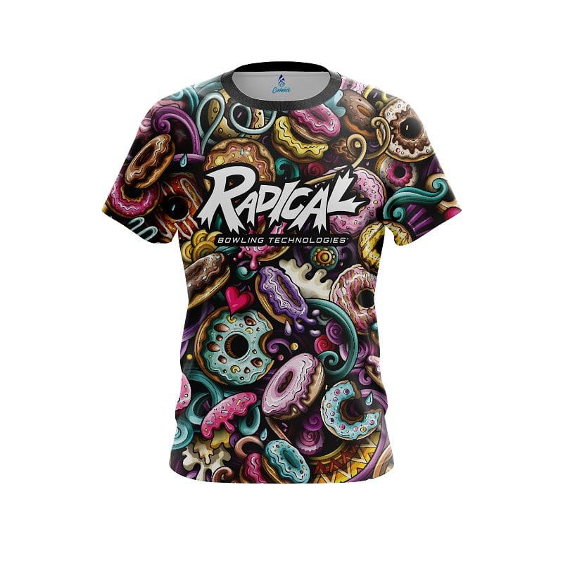 Stay 40% cooler with CoolWick. Our Radical Doughnut Explosion CoolWick Bowling Jerseys are made of two different fabrics with the back being our CoolWick technology fabric that helps wick moisture away and helps air flow more easily through the fibers.