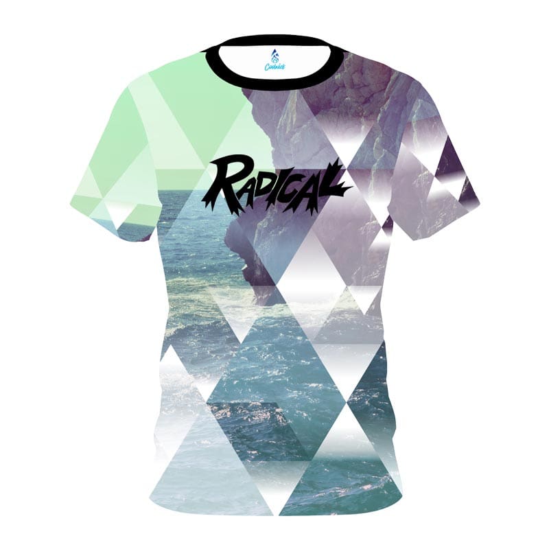 Stay 40% cooler with CoolWick. Our Radical Geometric Ocean CoolWick Bowling Jerseys are made of two different fabrics with the back being our CoolWick technology fabric that helps wick moisture away and helps air flow more easily through the fibers.