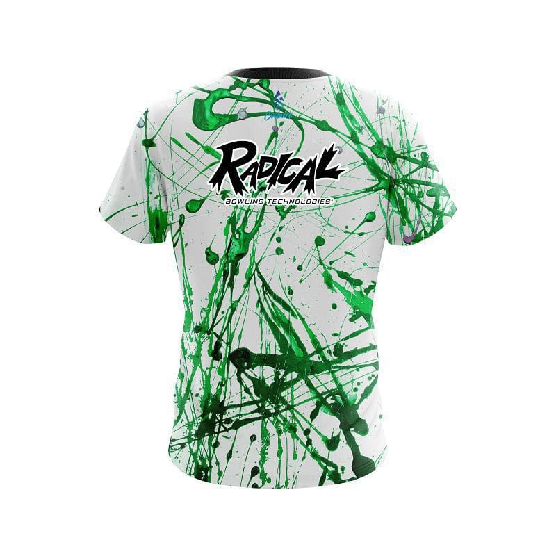 Stay 40% cooler with CoolWick. Our Radical Green Paint Splash CoolWick Bowling Jerseys are made of two different fabrics with the back being our CoolWick technology fabric that helps wick moisture away and helps air flow more easily through the fibers.