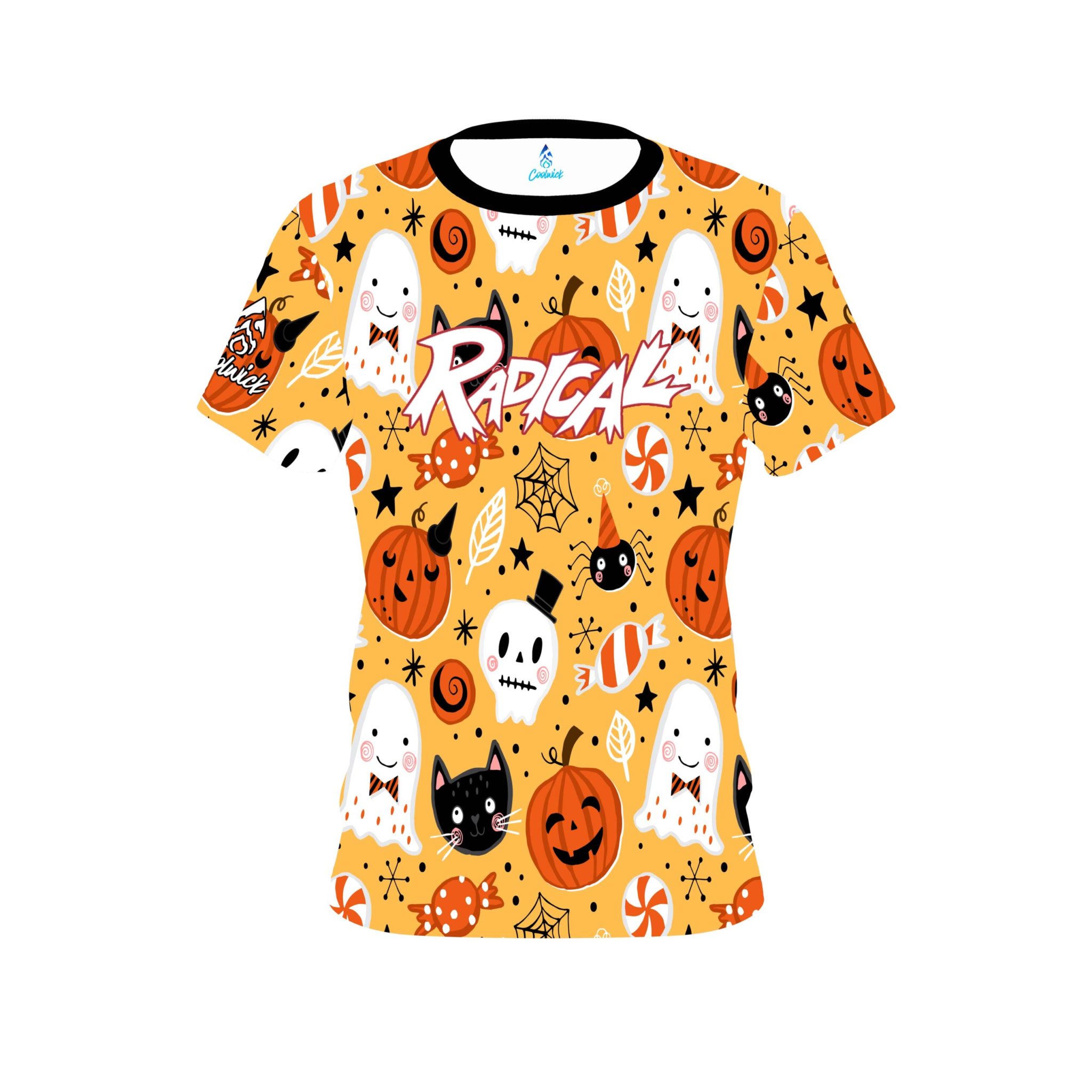 Stay 40% cooler with CoolWick. Our Radical Halloween Candy Coolwick Bowling Jerseys are made of two different fabrics with the back being our CoolWick technology fabric that helps wick moisture away and helps air flow more easily through the fibers.