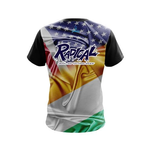 Stay 40% cooler with CoolWick. Our Radical Ireland USA Flag Shirt CoolWick Bowling Jerseys are made of two different fabrics with the back being our CoolWick technology fabric that helps wick moisture away and helps air flow more easily through the fibers.
