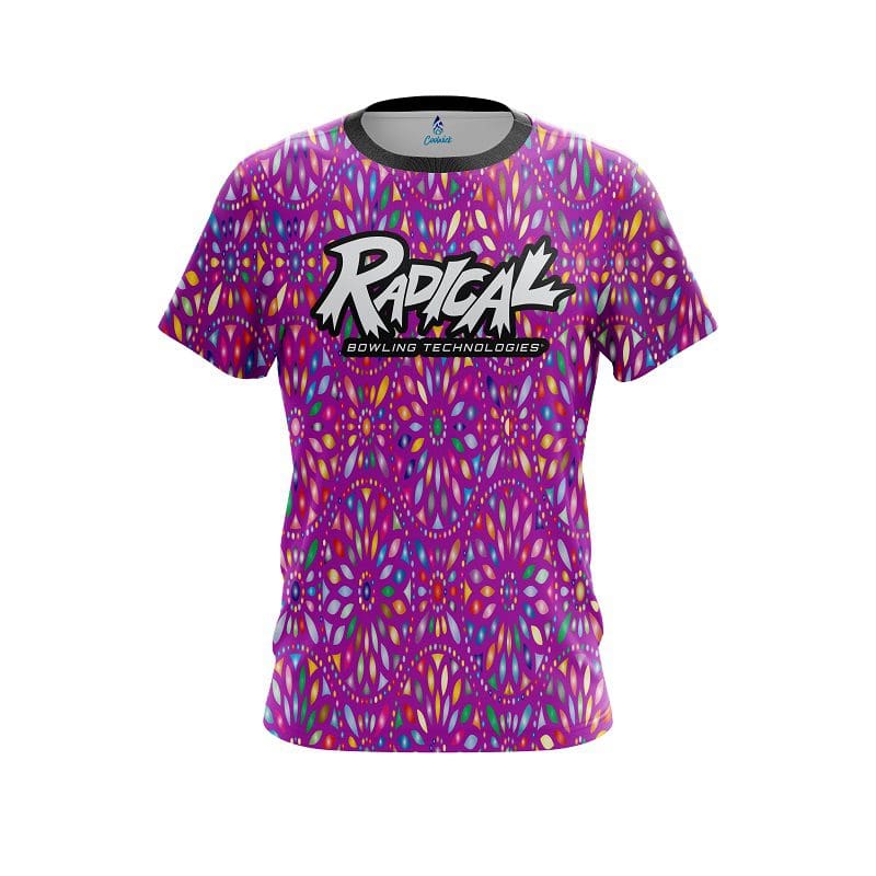 Stay 40% cooler with CoolWick. Our Radical Kaleidoscope Purple CoolWick Bowling Jerseys are made of two different fabrics with the back being our CoolWick technology fabric that helps wick moisture away and helps air flow more easily through the fibers.