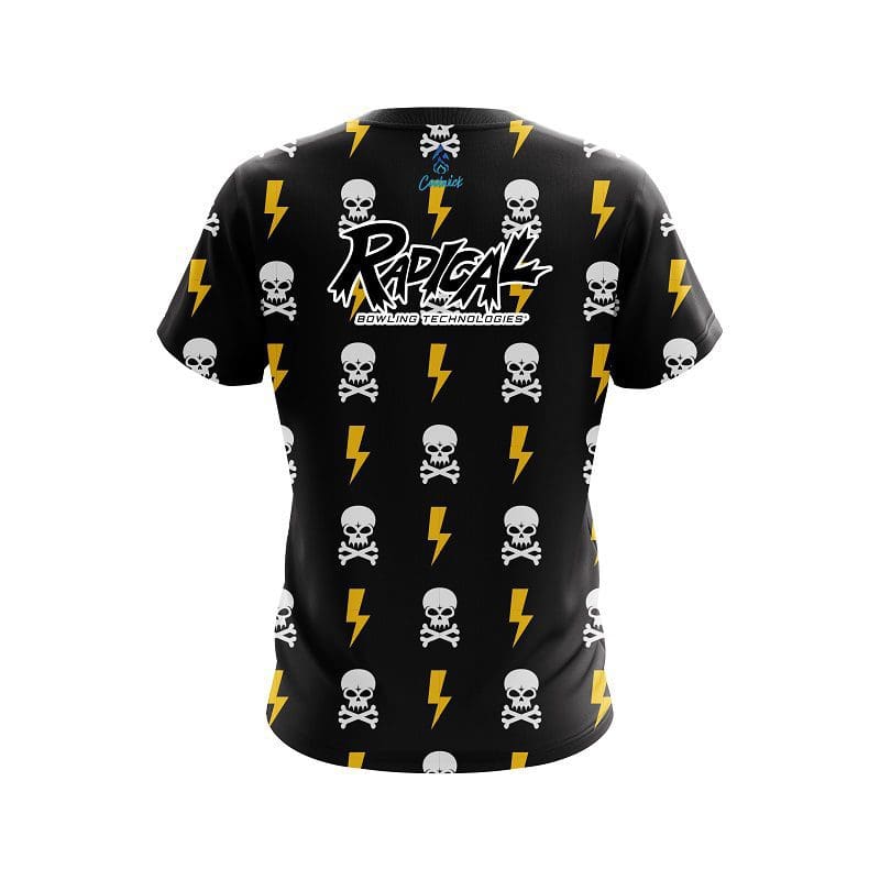 Stay 40% cooler with CoolWick. Our Radical Lightning Skull CoolWick Bowling Jerseys are made of two different fabrics with the back being our CoolWick technology fabric that helps wick moisture away and helps air flow more easily through the fibers.