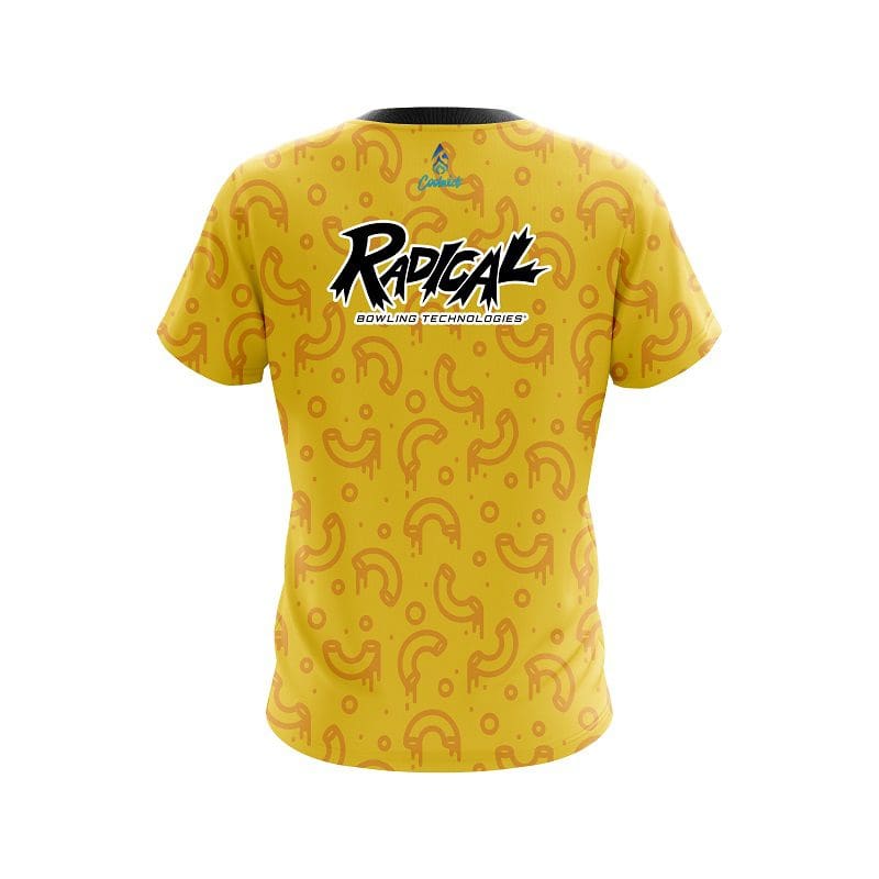 Stay 40% cooler with CoolWick. Our Radical Mac And Cheese CoolWick Bowling Jerseys are made of two different fabrics with the back being our CoolWick technology fabric that helps wick moisture away and helps air flow more easily through the fibers.
