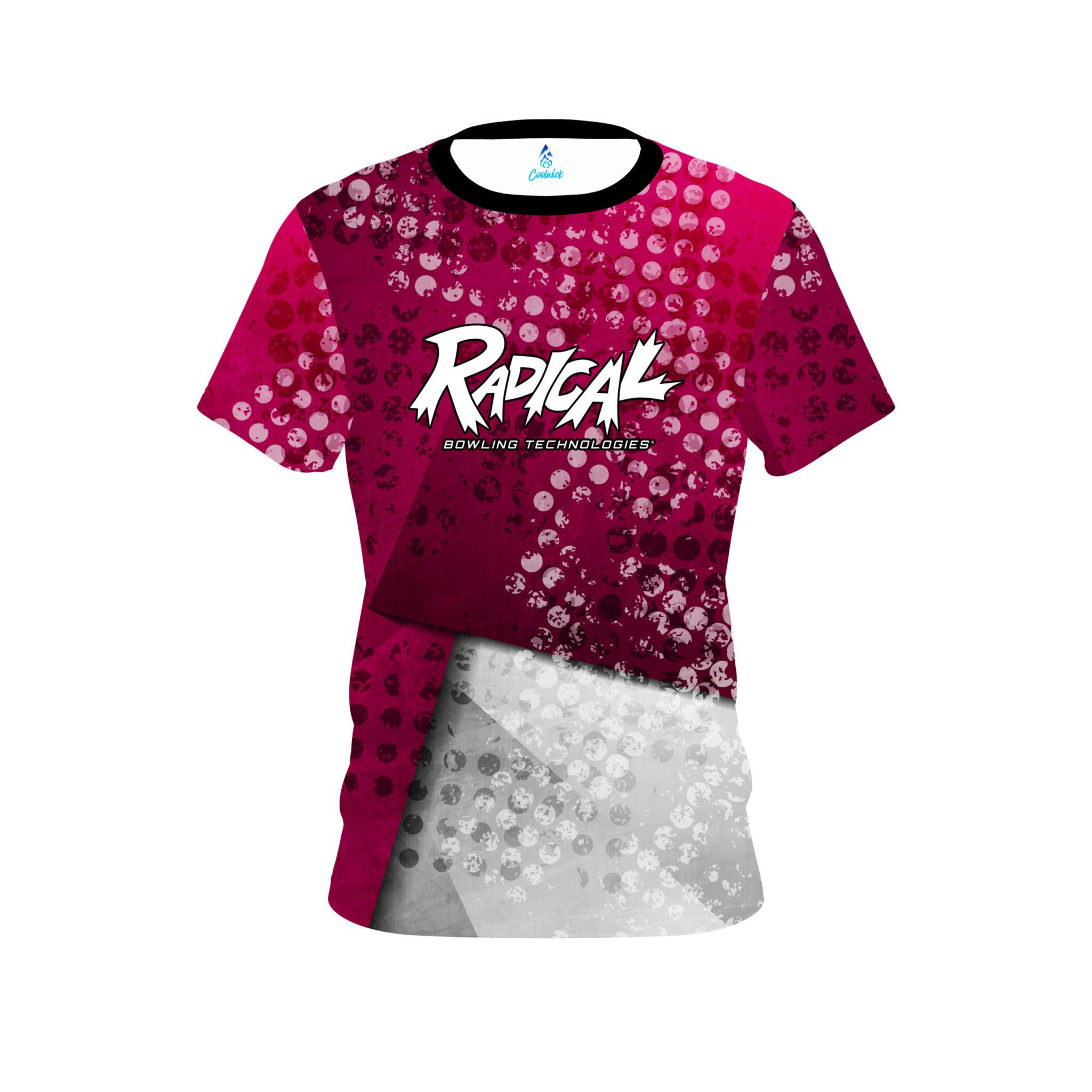 Stay 40% cooler with CoolWick. Our Radical Magenta Grungey CoolWick Bowling Jerseys are made of two different fabrics with the back being our CoolWick technology fabric that helps wick moisture away and helps air flow more easily through the fibers.