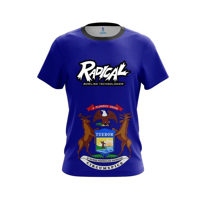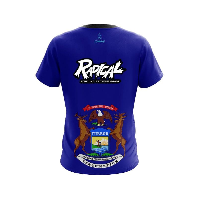 Stay 40% cooler with CoolWick. Our Radical Michigan Flag CoolWick Bowling Jersey are made of two different fabrics with the back being our CoolWick technology fabric that helps wick moisture away and helps air flow more easily through the fibers.