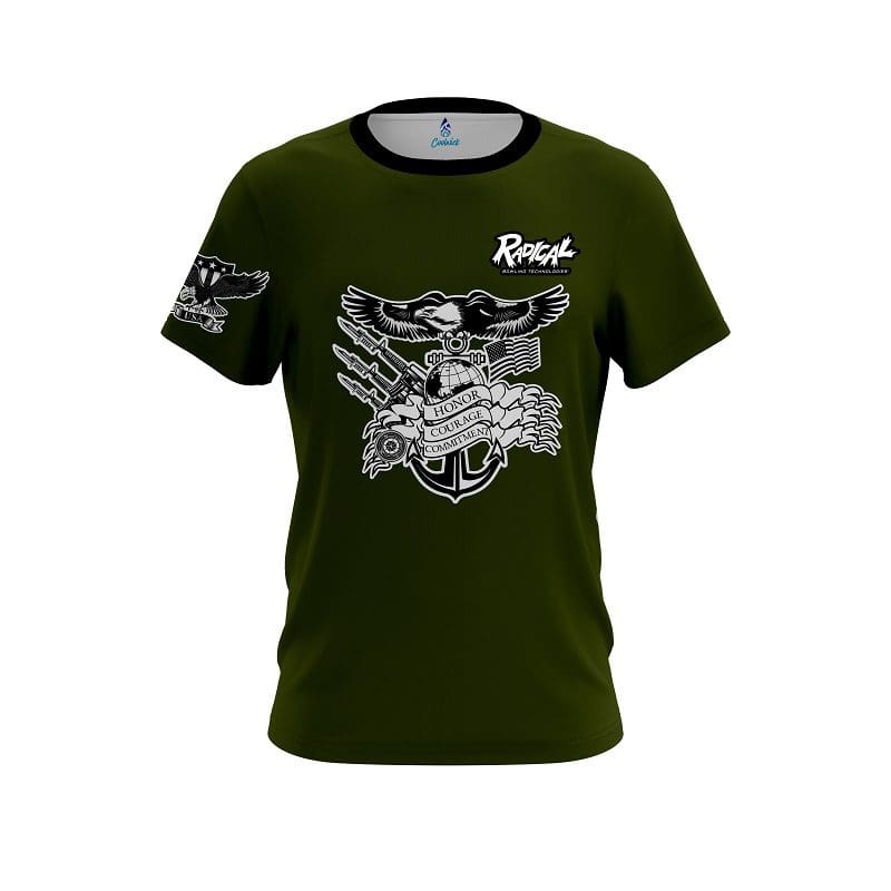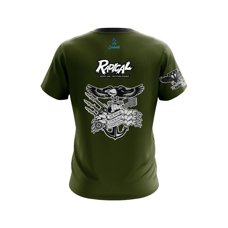 Stay 40% cooler with CoolWick. Our Radical Military Honor CoolWick Bowling Jerseys are made of two different fabrics with the back being our CoolWick technology fabric that helps wick moisture away and helps air flow more easily through the fibers.