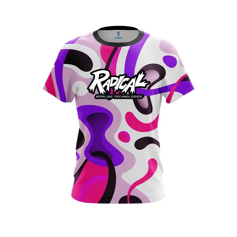 Stay 40% cooler with CoolWick. Our Radical Modern Art Purple CoolWick Bowling Jerseys are made of two different fabrics with the back being our CoolWick technology fabric that helps wick moisture away and helps air flow more easily through the fibers.