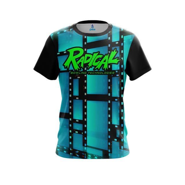 Stay 40% cooler with CoolWick. Our Radical Movie Reel Aqua CoolWick Bowling Jerseys are made of two different fabrics with the back being our CoolWick technology fabric that helps wick moisture away and helps air flow more easily through the fibers.