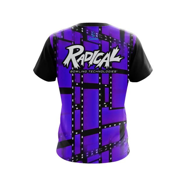 Stay 40% cooler with CoolWick. Our Radical Movie Reel Purple CoolWick Bowling Jerseys are made of two different fabrics with the back being our CoolWick technology fabric that helps wick moisture away and helps air flow more easily through the fibers.