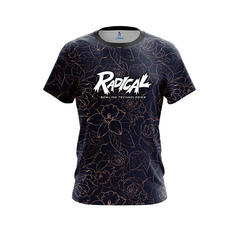 Stay 40% cooler with CoolWick. Our Radical Navy rose gold CoolWick Bowling Jerseys are made of two different fabrics with the back being our CoolWick technology fabric that helps wick moisture away and helps air flow more easily through the fibers.