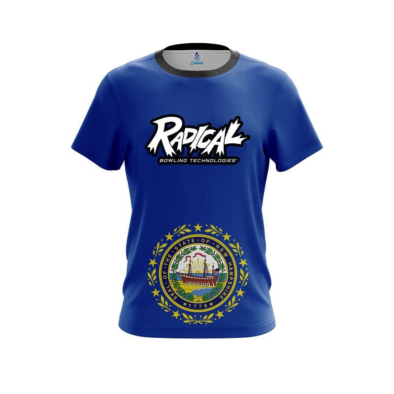 Stay 40% cooler with CoolWick. Our Radical New Hampshire Flag CoolWick Bowling Jersey are made of two different fabrics with the back being our CoolWick technology fabric that helps wick moisture away and helps air flow more easily through the fibers.