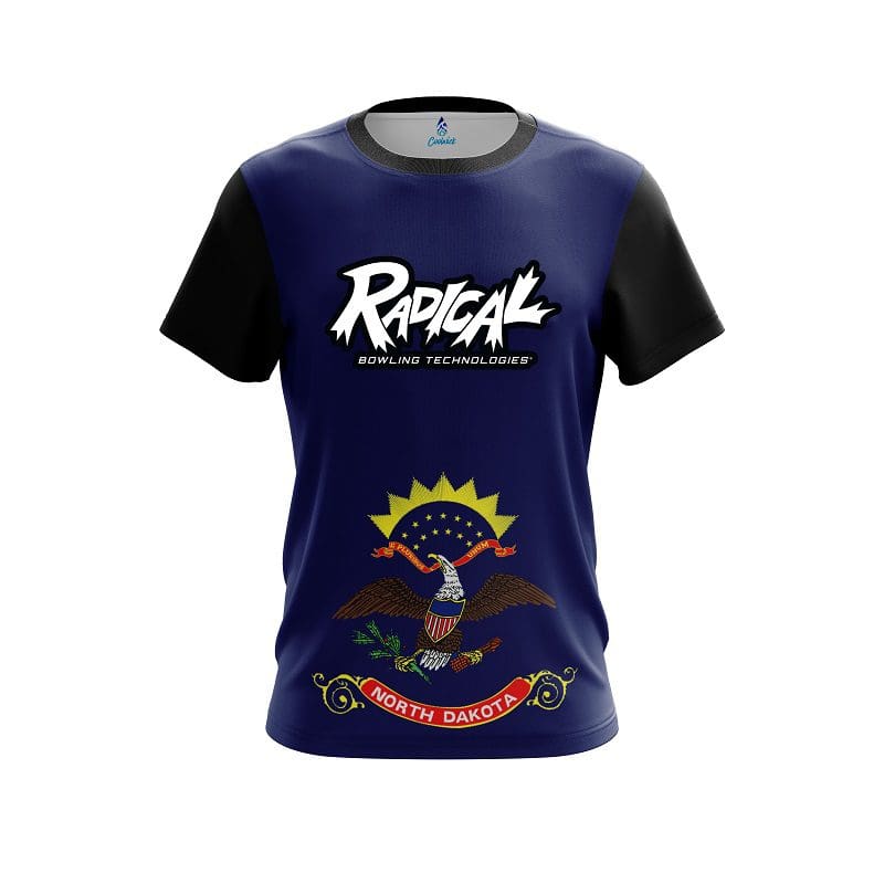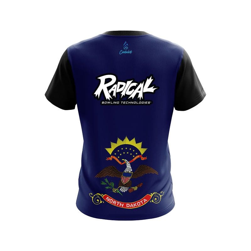 Stay 40% cooler with CoolWick. Our Radical North Dakota Flag CoolWick Bowling Jersey are made of two different fabrics with the back being our CoolWick technology fabric that helps wick moisture away and helps air flow more easily through the fibers.