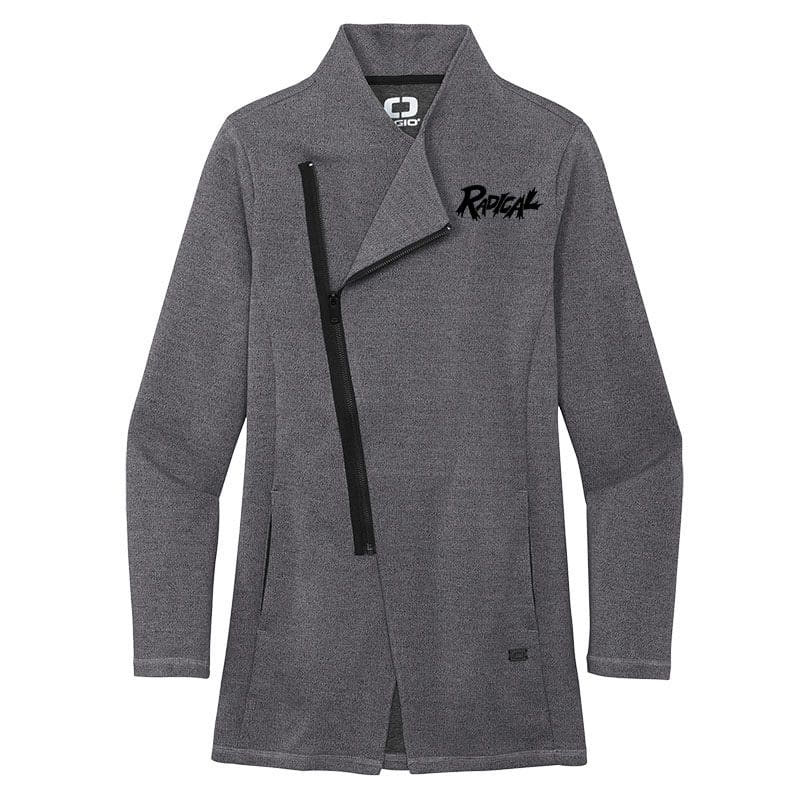 - Asymmetrical metal molded zipper with debossed O on zipper pull