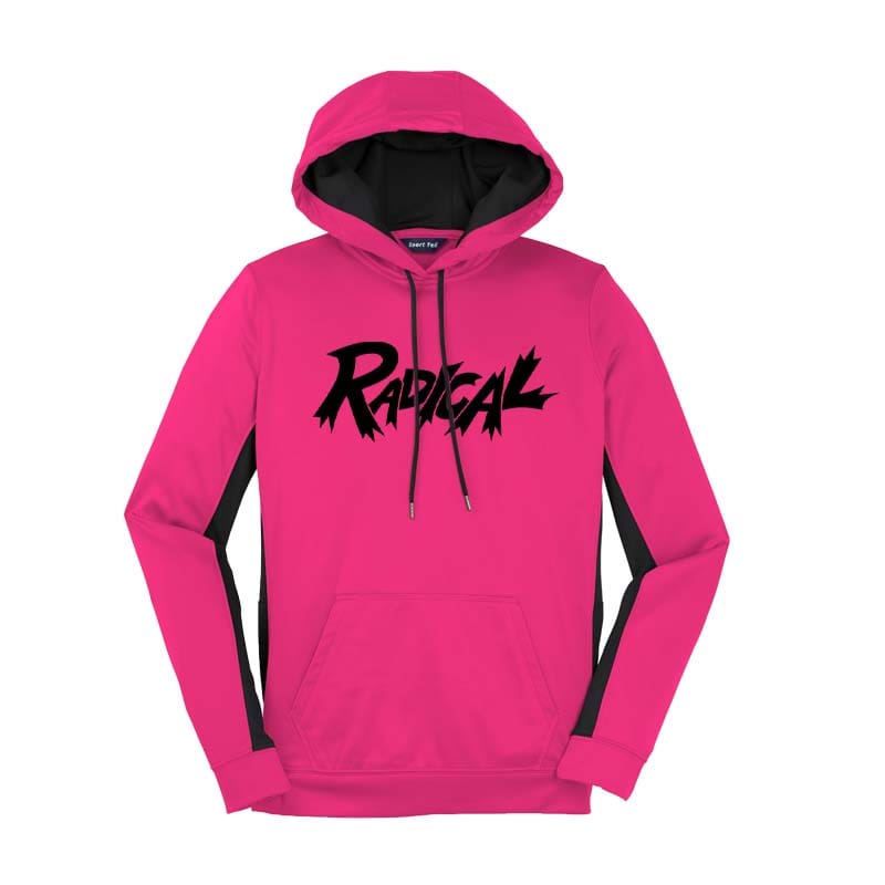 Radical Pink Black Coolwick Womens Fleece Colorblock Hoodie