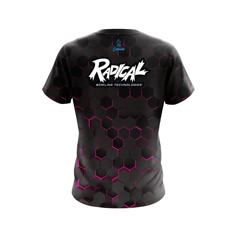 Stay 40% cooler with CoolWick. Our Radical Pink Honeycomb Fusion CoolWick Bowling Jerseys are made of two different fabrics with the back being our CoolWick technology fabric that helps wick moisture away and helps air flow more easily through the fibers.