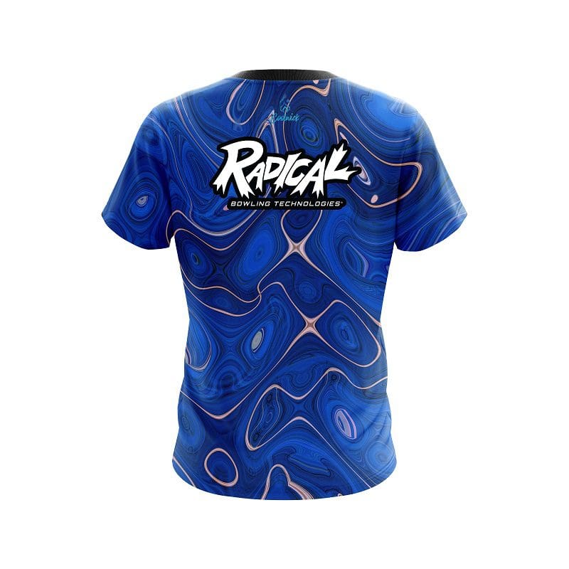 Stay 40% cooler with CoolWick. Our Radical Psychedelic Blue Flow CoolWick Bowling Jerseys are made of two different fabrics with the back being our CoolWick technology fabric that helps wick moisture away and helps air flow more easily through the fibers.