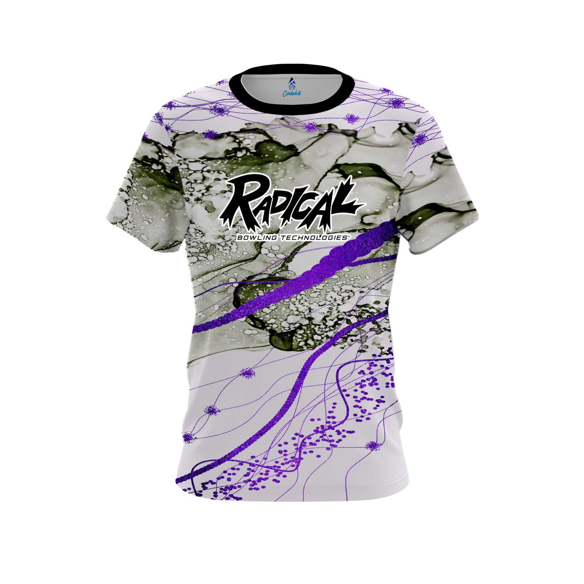 Stay 40% cooler with CoolWick. Our Radical Purple Granite CoolWick Bowling Jerseys are made of two different fabrics with the back being our CoolWick technology fabric that helps wick moisture away and helps air flow more easily through the fibers.
