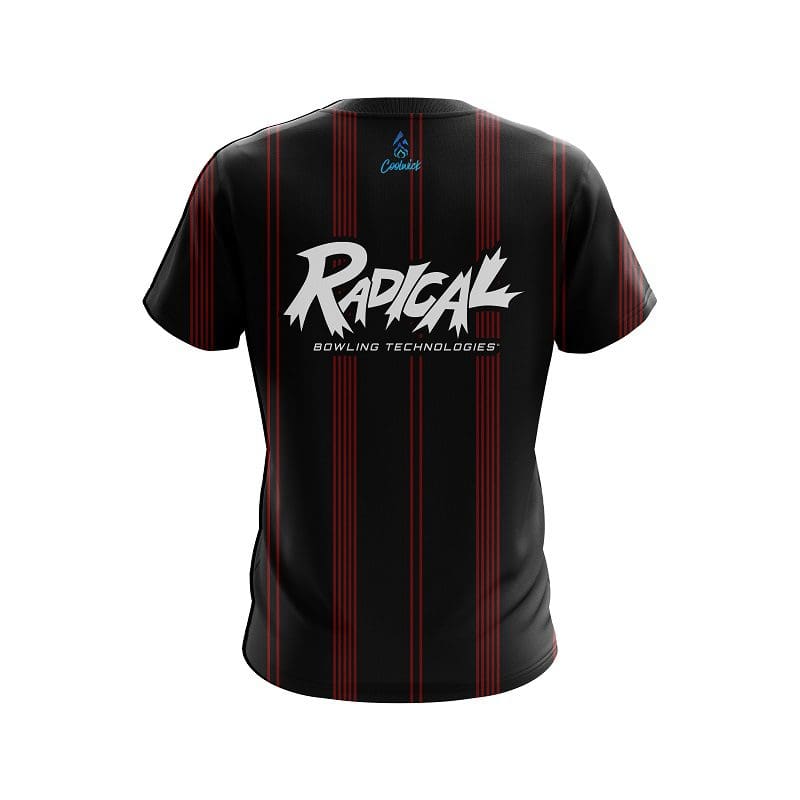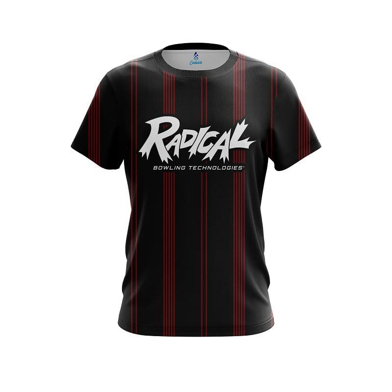 Stay 40% cooler with CoolWick. Our Radical Red And Black Stripe CoolWick Bowling Jerseys are made of two different fabrics with the back being our CoolWick technology fabric that helps wick moisture away and helps air flow more easily through the fibers.