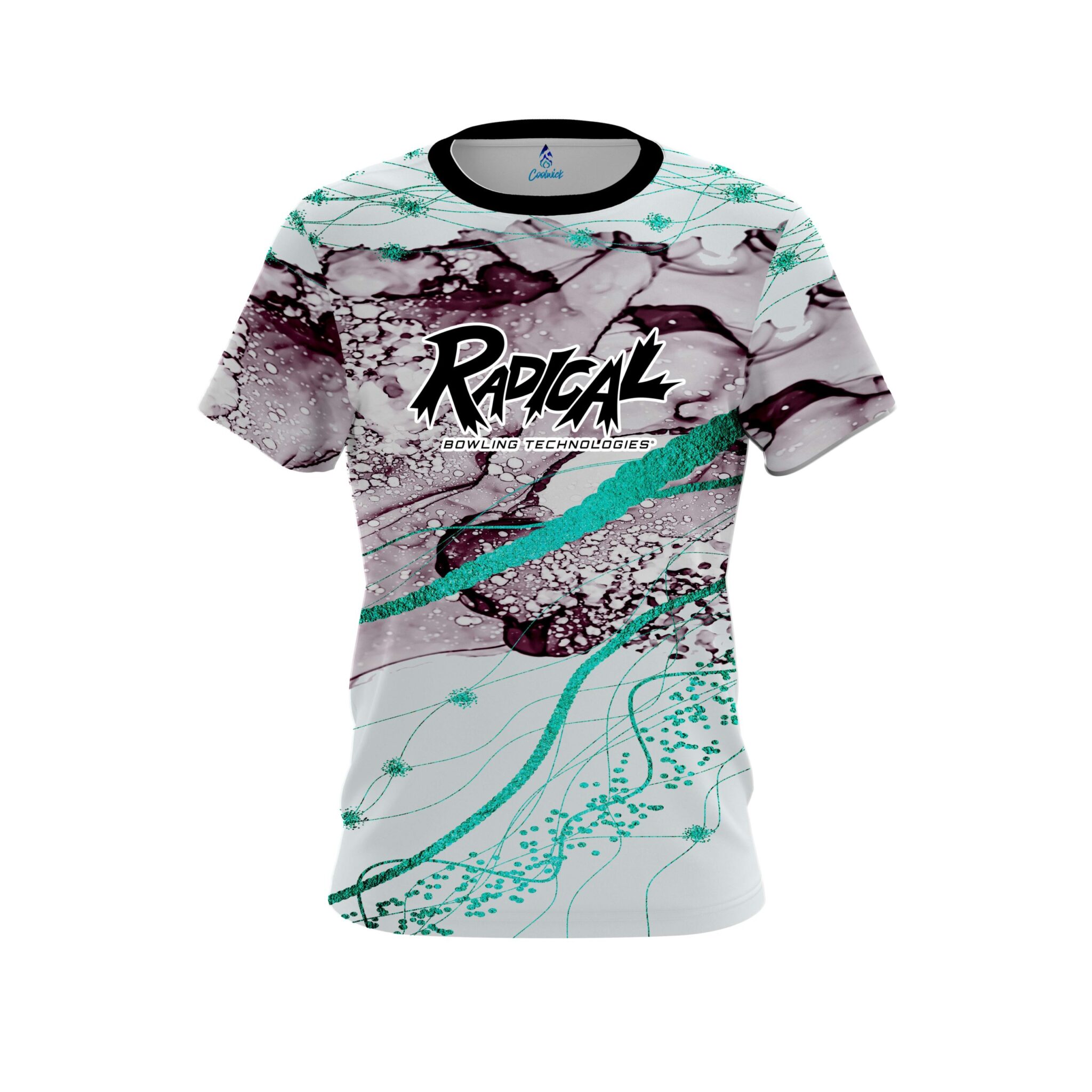 Stay 40% cooler with CoolWick. Our Radical Teal Granite CoolWick Bowling Jerseys are made of two different fabrics with the back being our CoolWick technology fabric that helps wick moisture away and helps air flow more easily through the fibers.