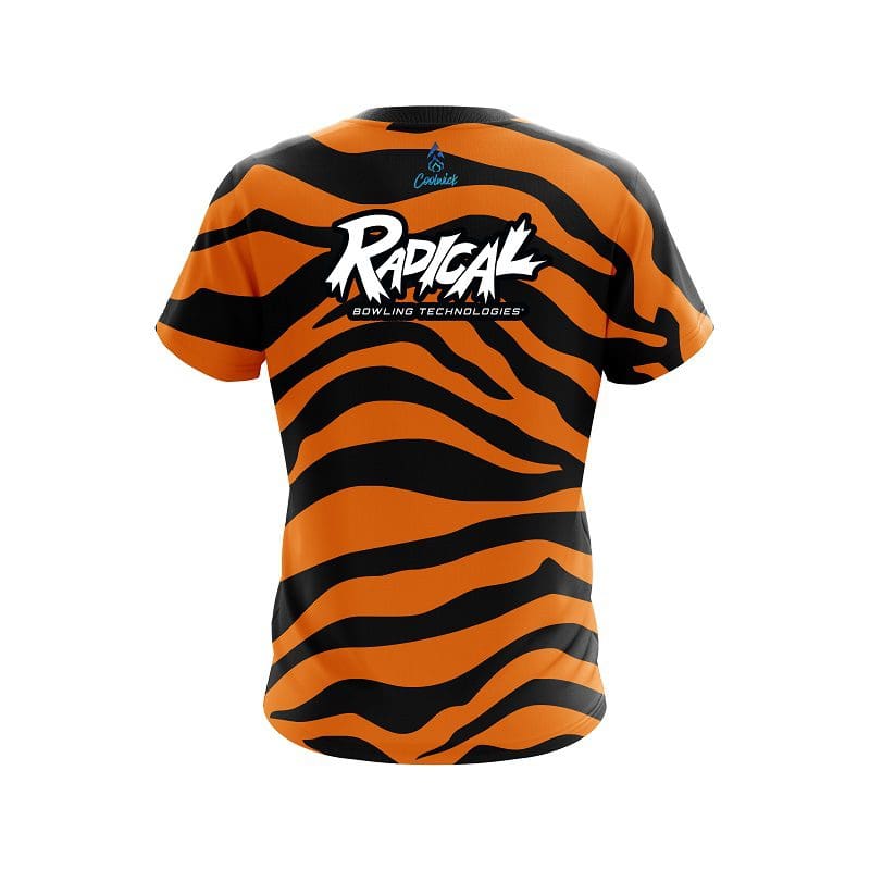 Stay 40% cooler with CoolWick. Our Radical Tiger Stripes CoolWick Bowling Jerseys are made of two different fabrics with the back being our CoolWick technology fabric that helps wick moisture away and helps air flow more easily through the fibers.