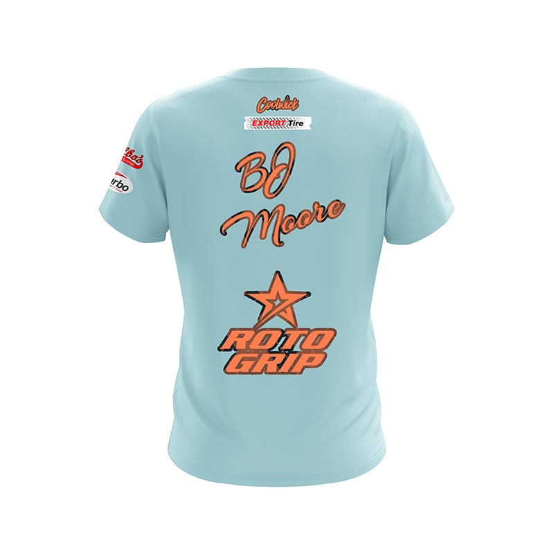Gear up for a remarkable experience of performance, comfort, and style all rolled into one! Introducing the breathtaking Roto Grip BJ Moore Powder Blue Coral CoolWick Bowling Jersey – meticulously crafted with the latest custom design by CoolWick Staffer and Professional Bowler, BJ Moore!