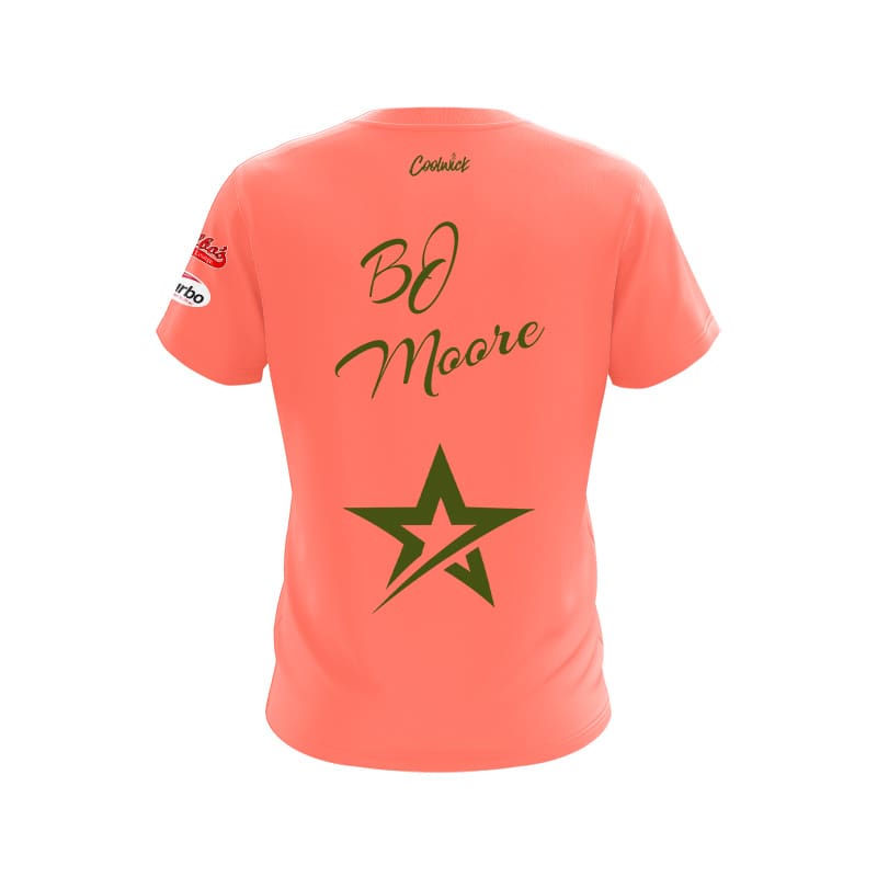 Bowl like the pros with our signature replica jerseys! Introducing the Roto Grip BJ Moore Salmon Army Green CoolWick Bowling Jersey – designed with innovative fabrics for superior performance. Our dye-sublimated replica bowling jersey features the cutting-edge CoolWick technology fabric. You will be staying 40% cooler as it efficiently wicks away moisture and improves airflow.