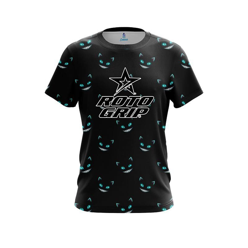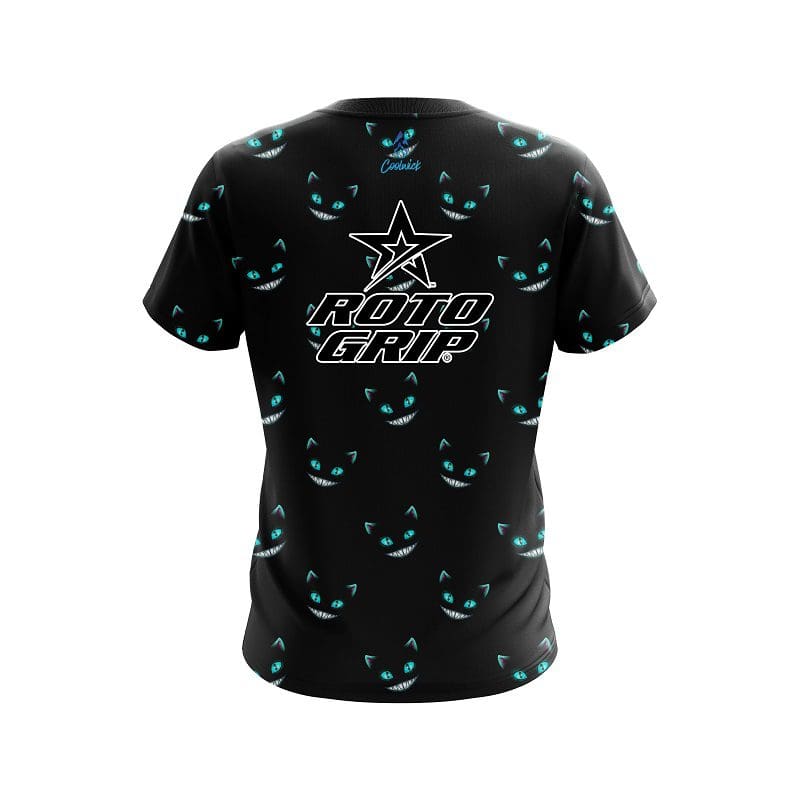 Stay 40% cooler with CoolWick. Our Roto Grip Cheshire Midnight Cat CoolWick Bowling Jerseys are made of two different fabrics with the back being our CoolWick technology fabric that helps wick moisture away and helps air flow more easily through the fibers.