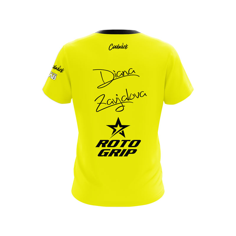 Gear up for a remarkable experience of performance, comfort, and style all rolled into one! Introducing the breathtaking Roto Grip Diana Zavjalova Yellow Black CoolWick Bowling Jersey – meticulously crafted with the latest custom design by CoolWick Staffer and PWBA Professional Bowler, Diana Zavjalova!