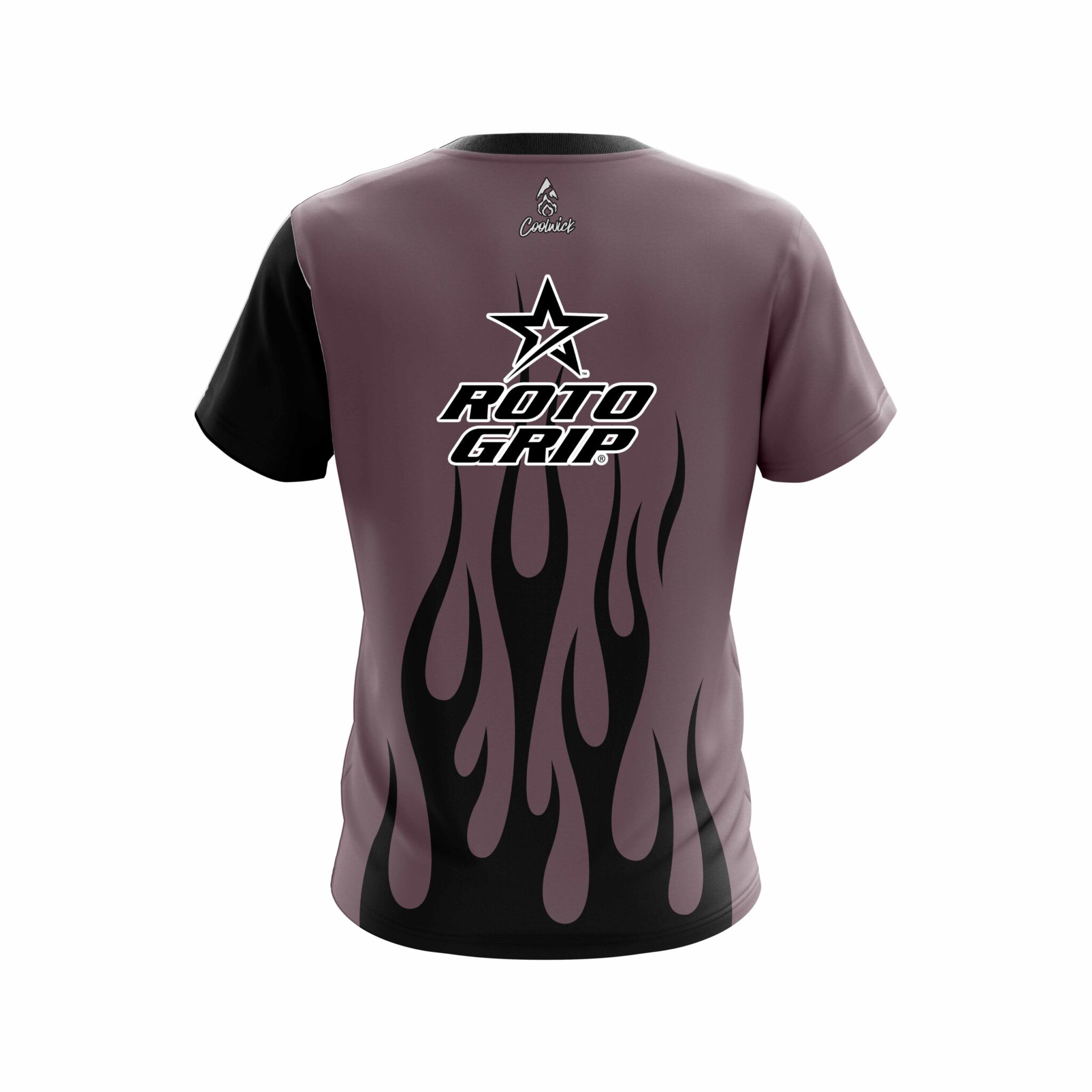 Stay 40% cooler with CoolWick. Our Roto Grip Eggplant Flaming CoolWick Bowling Jerseys are made of two different fabrics with the back being our CoolWick technology fabric that helps wick moisture away and helps air flow more easily through the fibers.