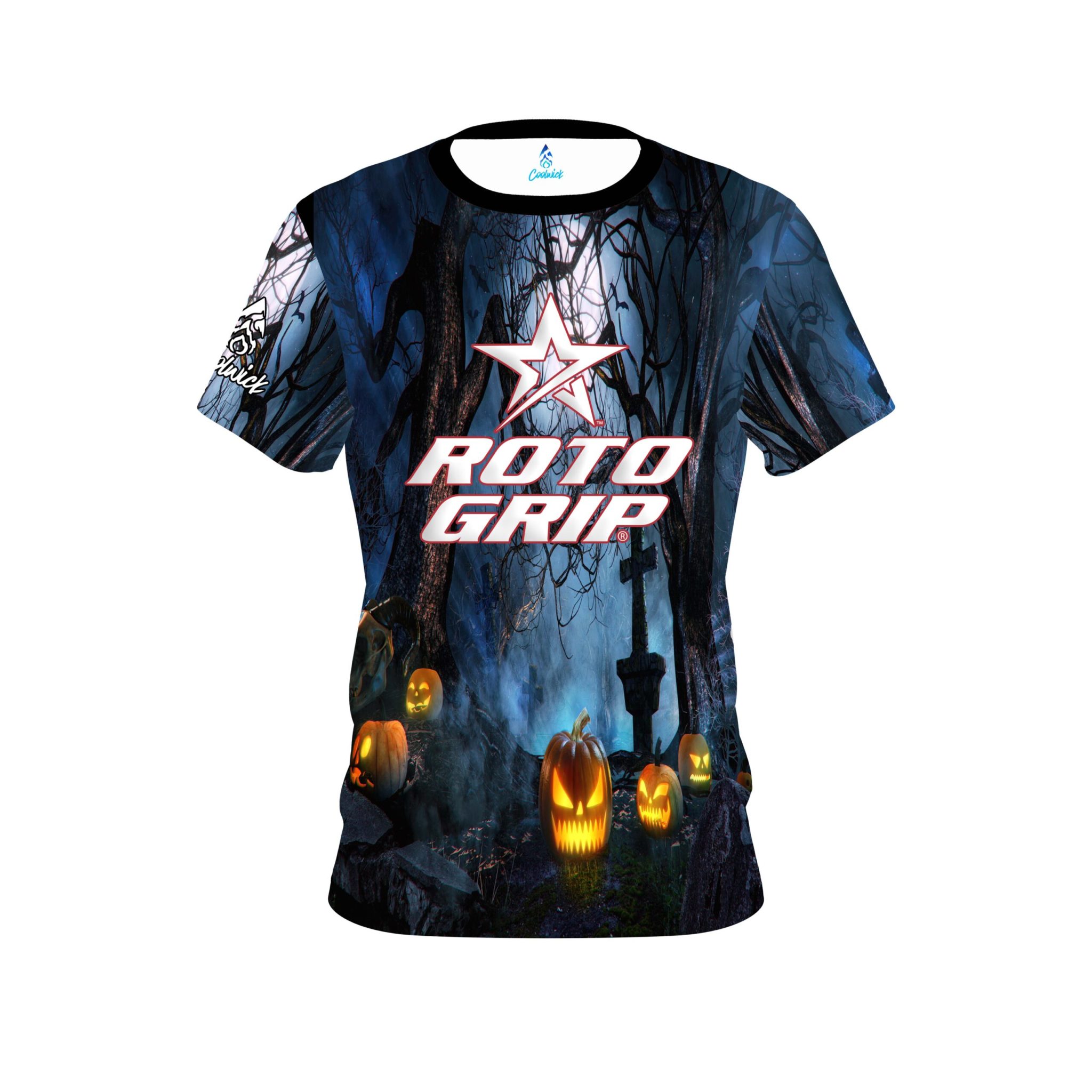 Stay 40% cooler with CoolWick. Our Roto Grip Halloween Pumpkin Alley Coolwick Bowling Jerseys are made of two different fabrics with the back being our CoolWick technology fabric that helps wick moisture away and helps air flow more easily through the fibers.
