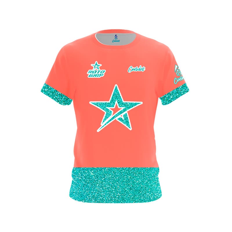 Gear up for a remarkable experience of performance, comfort, and style all rolled into one! Introducing the breathtaking Roto Grip Kristina Cox Coral Teal Glitter CoolWick Bowling Jersey – meticulously crafted with the latest custom design by CoolWick Staffer, Kristina Cox!