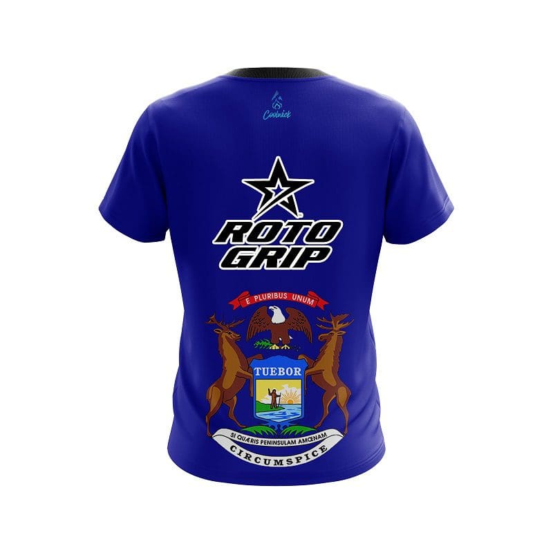 Stay 40% cooler with CoolWick. Our Roto Grip Michigan Flag CoolWick Bowling Jersey are made of two different fabrics with the back being our CoolWick technology fabric that helps wick moisture away and helps air flow more easily through the fibers.