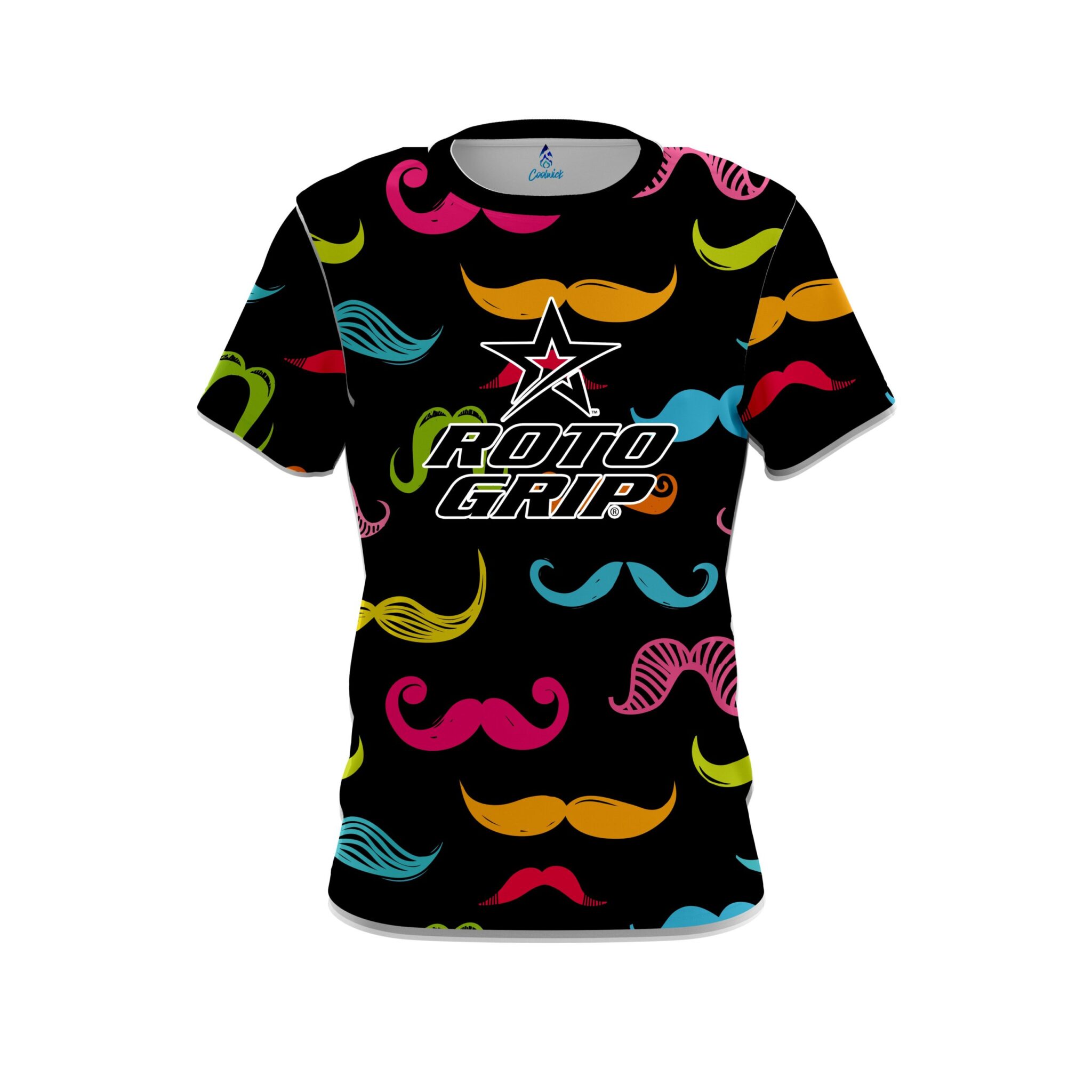 Stay 40% cooler with CoolWick. Our Roto Grip Multi-Colored Mustache CoolWick Bowling Jerseys are made of two different fabrics with the back being our CoolWick technology fabric that helps wick moisture away and helps air flow more easily through the fibers.