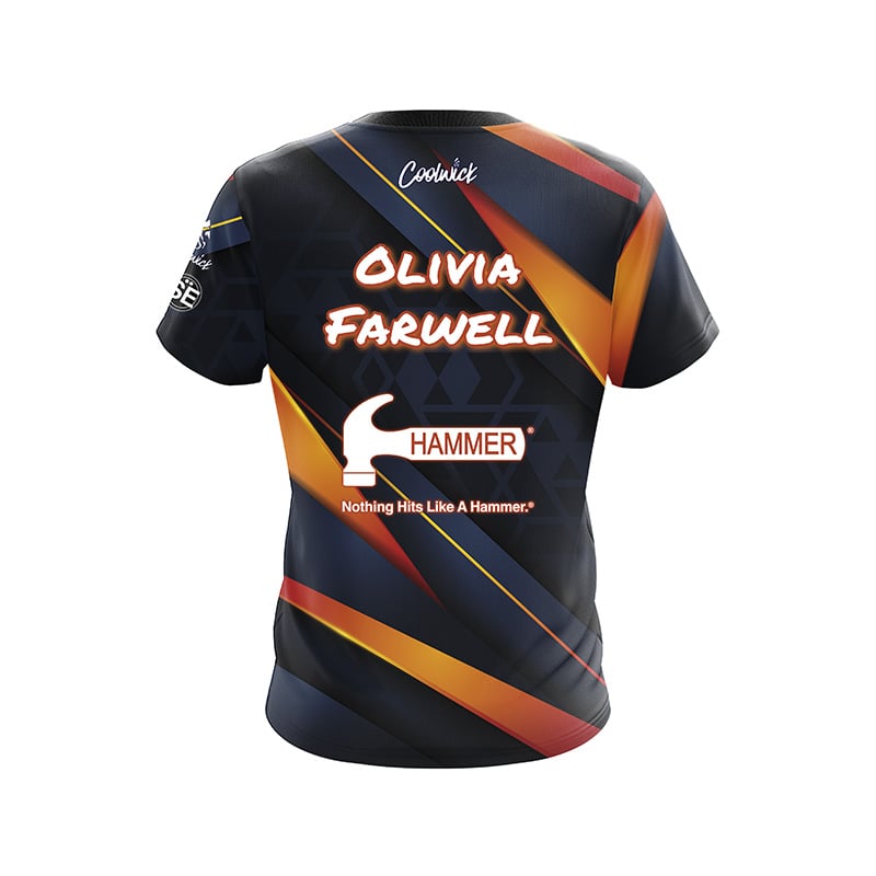 Gear up for a remarkable experience of performance, comfort, and style all rolled into one! Introducing the breathtaking Hammer Olivia Farwell Navy Orange Impulse CoolWick Bowling Jersey – meticulously crafted with the latest custom design by CoolWick Staffer, Olivia Farwell!