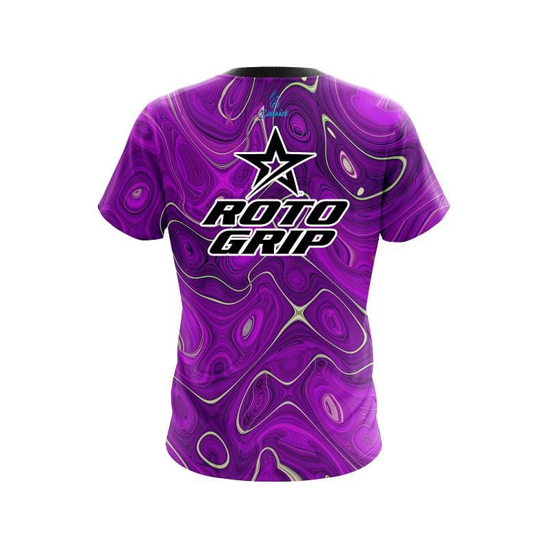 Stay 40% cooler with CoolWick. Our Roto Grip Psychedelic Purple Flow CoolWick Bowling Jerseys are made of two different fabrics with the back being our CoolWick technology fabric that helps wick moisture away and helps air flow more easily through the fibers.