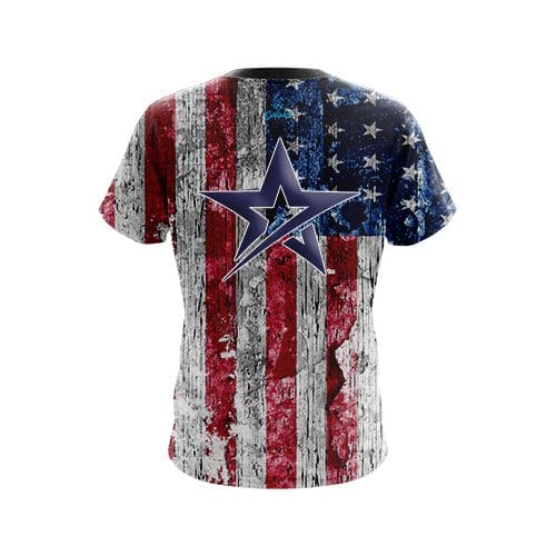 Stay 40% cooler with CoolWick. Our Roto Grip Rustic USA Flag Shirt CoolWick Bowling Jerseys are made of two different fabrics with the back being our CoolWick technology fabric that helps wick moisture away and helps air flow more easily through the fibers.