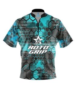 Stay 40% cooler with CoolWick. Our Roto Grip Teal Honeycomb Quick Ship CoolWick Sash Zip Bowling Jerseys are made of CoolWick technology fabric that helps wick moisture away and helps air flow more easily through the fibers.