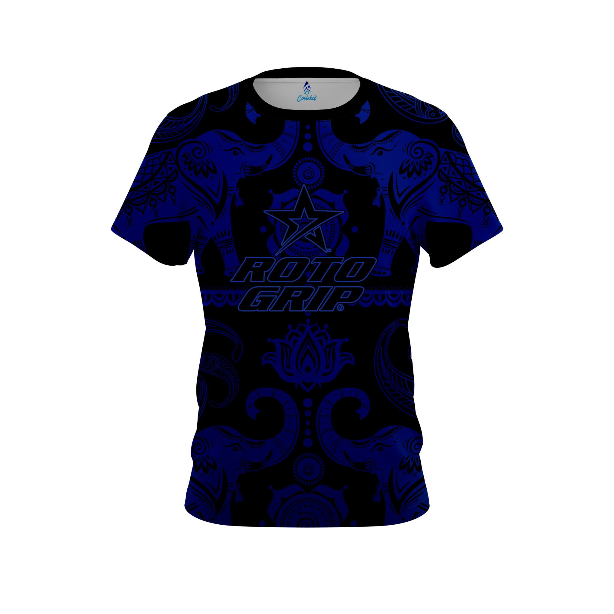 Stay 40% cooler with CoolWick. Our Roto Grip Tribal Elephants Blue and Black CoolWick Bowling Jersey are made of two different fabrics with the back being our CoolWick technology fabric that helps wick moisture away and helps air flow more easily through the fibers.