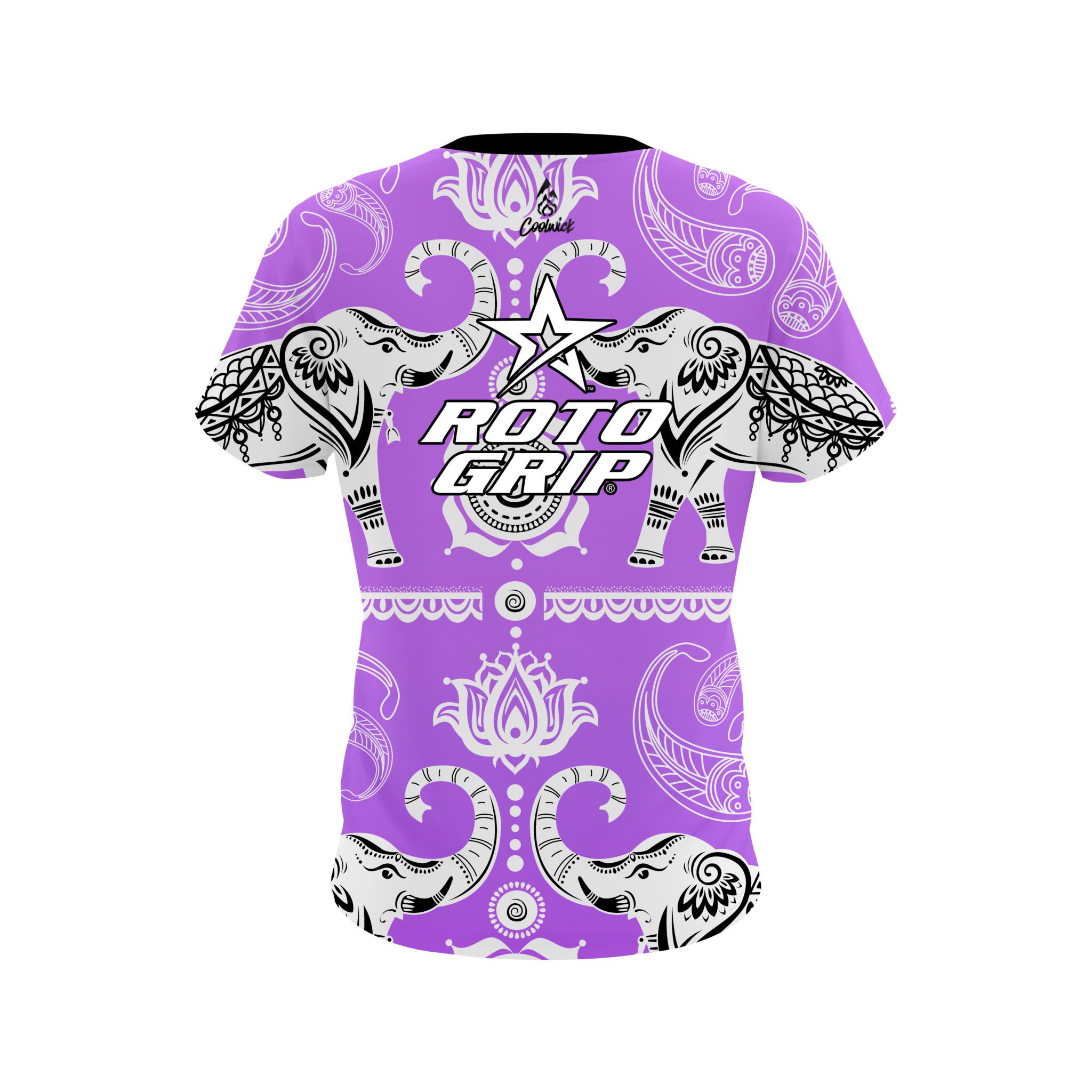 Stay 40% cooler with CoolWick. Our Roto Grip Tribal Elephants Purple CoolWick Bowling Jersey are made of two different fabrics with the back being our CoolWick technology fabric that helps wick moisture away and helps air flow more easily through the fibers.