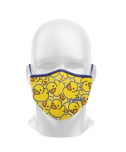 Stay 40% cooler with CoolWick. Our Rubber Duckie dye sublimated masks are two-ply and 100% polyester that covers the wearer’s nose and mouth. Our masks are made of fabric that helps wick moisture away and helps air flow more easily through the fibers. The fabric binding has a slight stretch, while ear loops and a center seam help hold it comfortably in place all day.