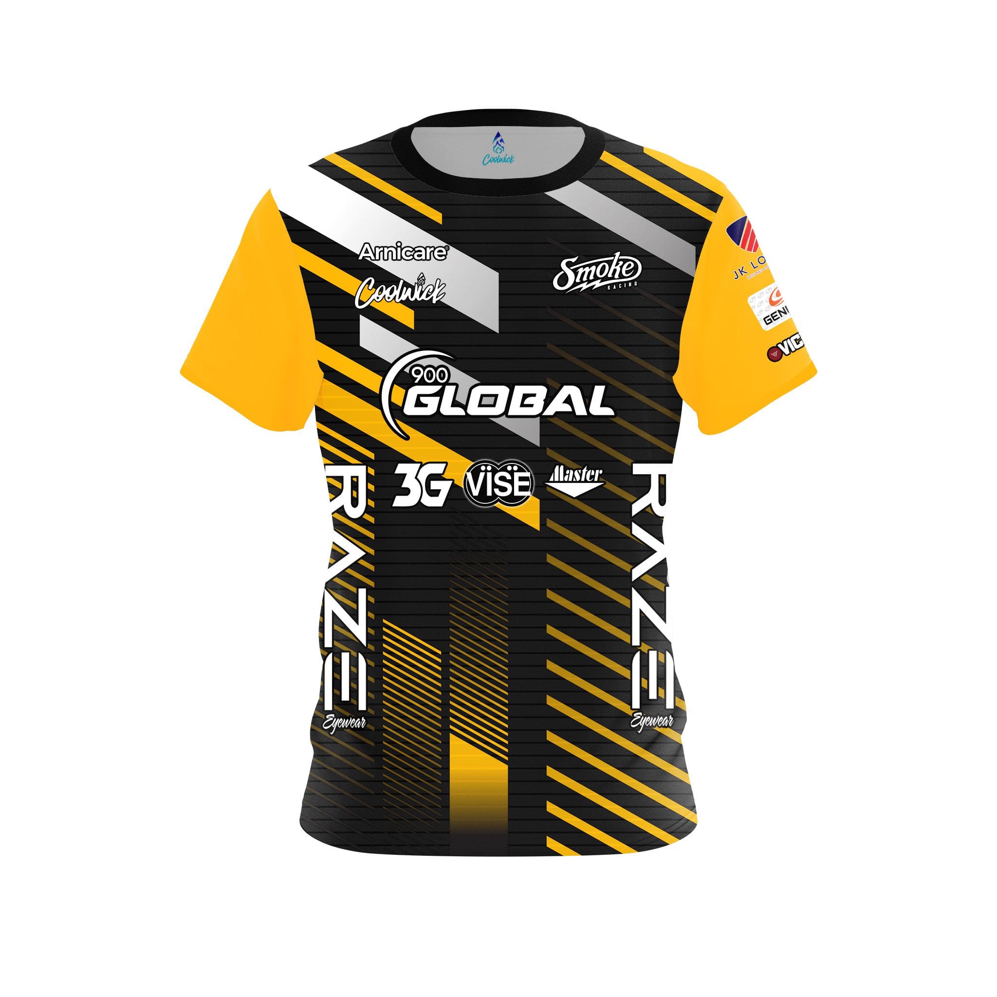 Stay 40% cooler with CoolWick. Our Sean Rash Black Gold Sport Stripes Replica CoolWick Bowling Jerseys are made of two different fabrics with the back being our CoolWick technology fabric that helps wick moisture away and helps air flow more easily through the fibers.