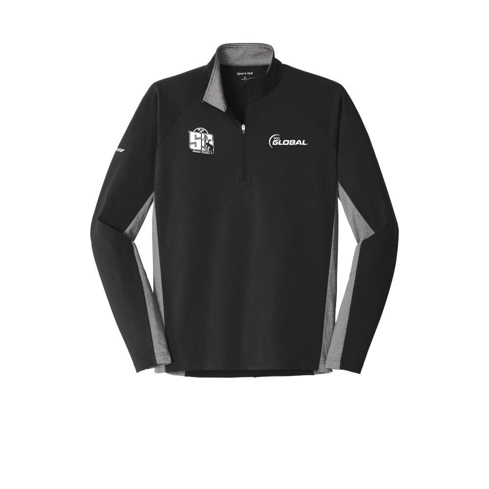 By mixing heather with a solid color and adding reflective hits, this moisture-wicking pullover has a technical look plus plenty of stretch for easy movement.