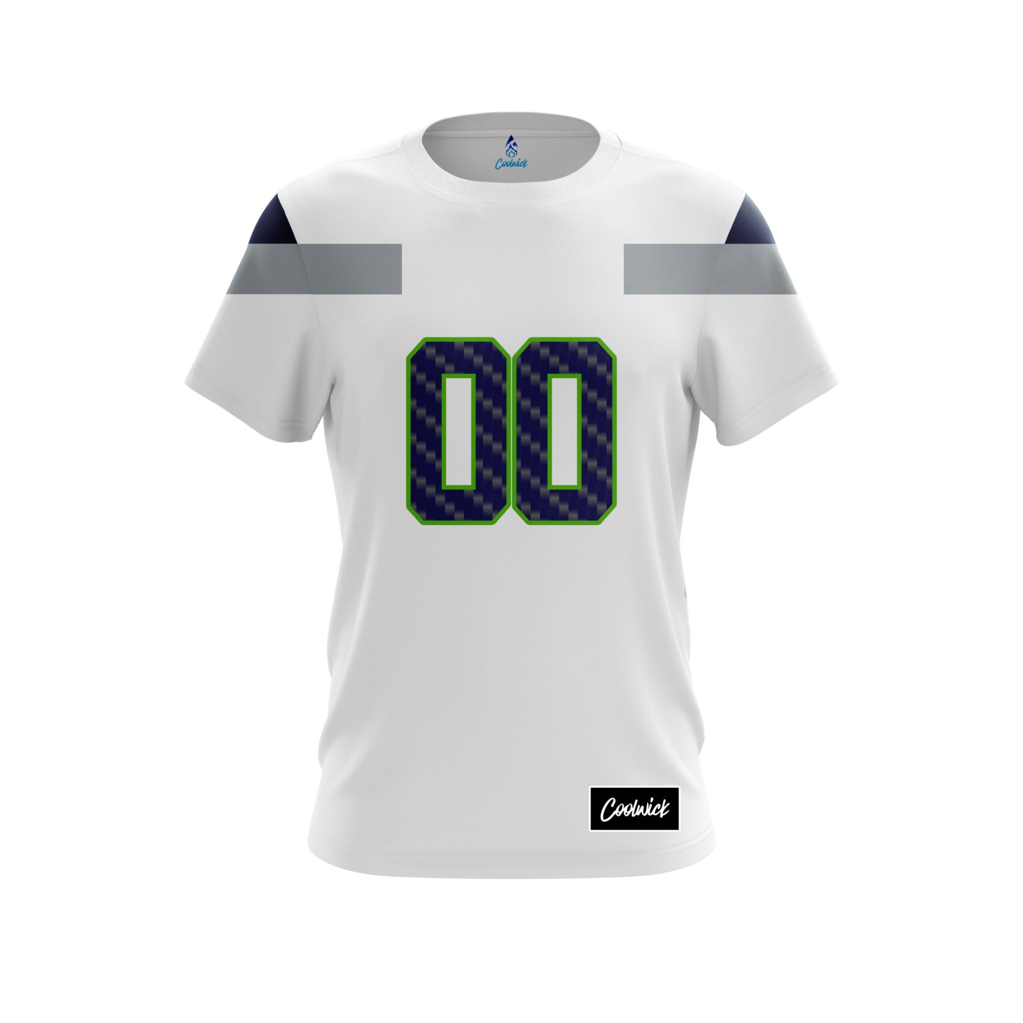 Designed, cut and sewn by hand stay 40% cooler with CoolWick. Our Seattle Away Football CoolWick Bowling Jerseys are made of two different fabrics with the back being our CoolWick technology fabric that helps wick moisture away and helps air flow more easily through the fibers.