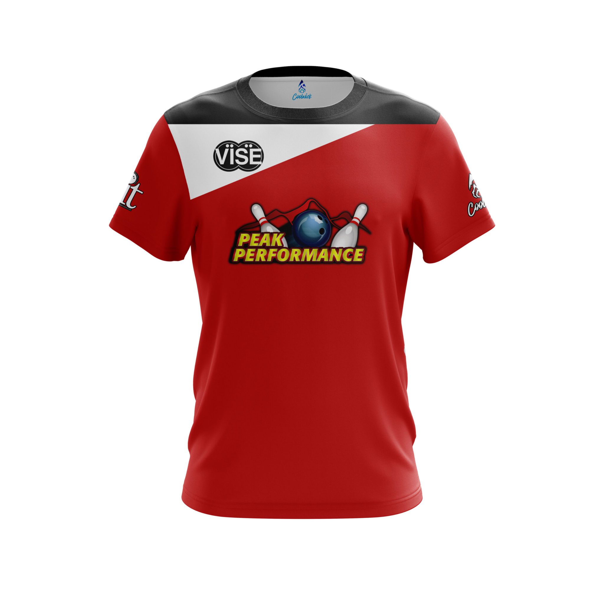 Designed, cut and sewn by hand stay 40% cooler with CoolWick. Our Shawn Naumann Red White Black Replica CoolWick Bowling Jerseys are made of two different fabrics with the back being our CoolWick technology fabric that helps wick moisture away and helps air flow more easily through the fibers.